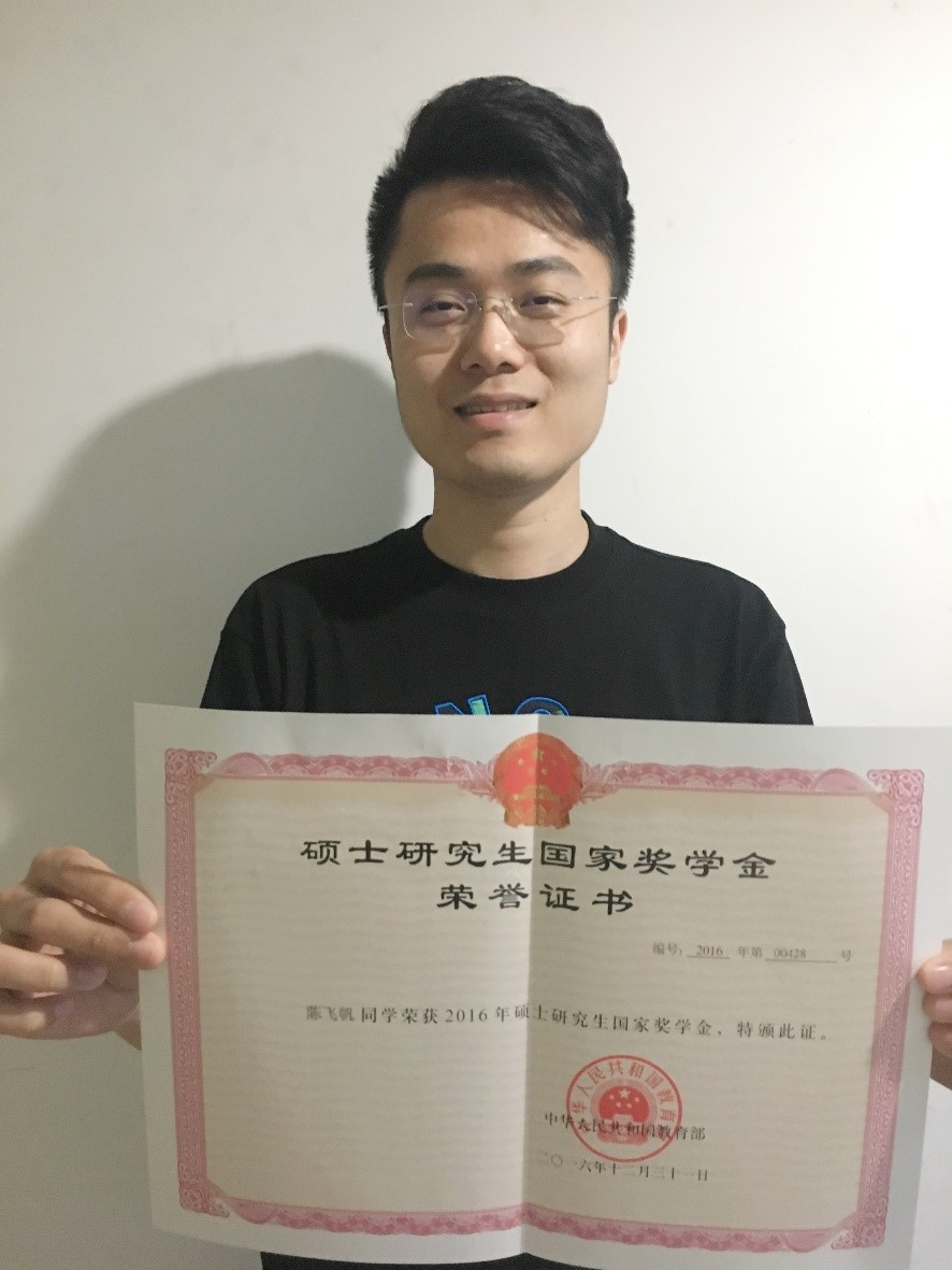 回首三年研究生学习时光,陈飞帆不仅学到了知识、懂得了坚强,也知道将来的工作过程不会一帆风顺,总会有曲折。但他认为,只要不忘初心,怀抱着当初对工作的热情和憧憬,脚踏实地,一定能够克服困难,实现自己的理想。