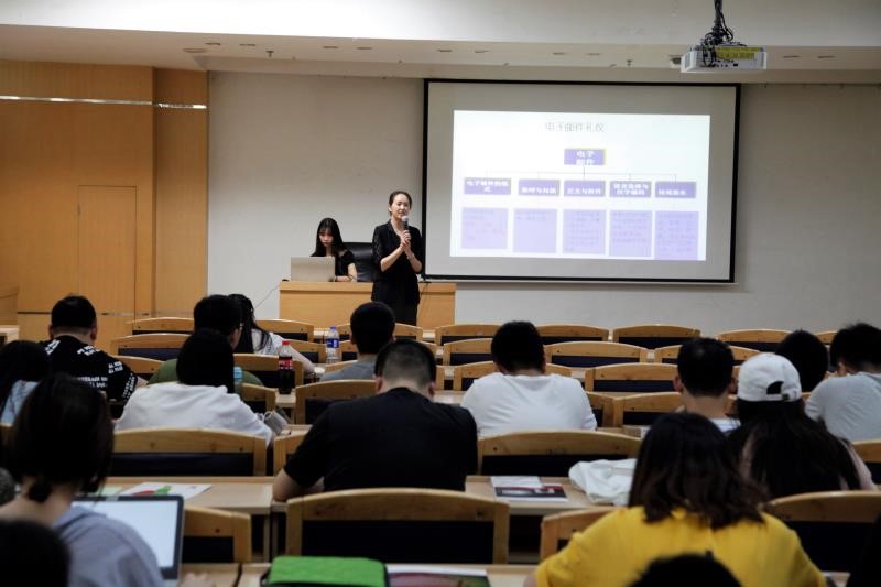 在讲座上,田老师耐心为我们讲解了每一种礼仪的要领,甚至自己亲身示范了一些站姿、坐姿以及鞠躬的姿势等,给我们这些未来进入职场的同学们提供了很好的指导作用。