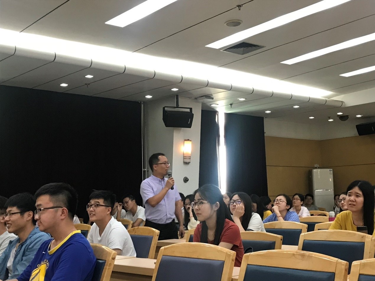 课程中,沈老师用巧妙的举例和诙谐的语言,在阐释新时代背景下新科技、新慈善和新青年的过程中,将“用青年力量践行公益精神”这一课程主题娓娓道来。党的十九大报告中所强调的“国之重器”,以及云计算、物联网、人工智能等,都是新科技的重要内涵。沈老师指出,新科技在极大程度地丰富我们日常生活之时,也会彻底颠覆我们的生活,可能造成“三无时代”形成,即一无工作,二无生意,三无缝可钻。因此,沈老师也给学员们几点提醒:未来已经来临,只是尚未流行,紧跟时代步伐,永葆炙热初心。接着,沈老师为学员们详细讲述了新慈善所包括的内涵,辨别真假社会组织的方法,以及依法做慈善、寻求社会帮助的途径。从社会组织、人民团体、群团组织,谈到慈善组织、慈善活动、慈善服务等,在充实而富有趣味性的讲解中,解答了学生团干部们对如何开展青年志愿服务工作的困惑。之后,沈老师从自身建设民政部民政青年同心社的亲身经历,为同学们指出在新时代、新科技、新慈善的背景下,如何做新青年。他以四川的“洗刷刷”公益慈善项目为例,为学员们分享做慈善时的立足点和出发点,同时强调,在做公益慈善时,应尽可能考虑当地所急需和必需,做有深度、有作用的慈善。