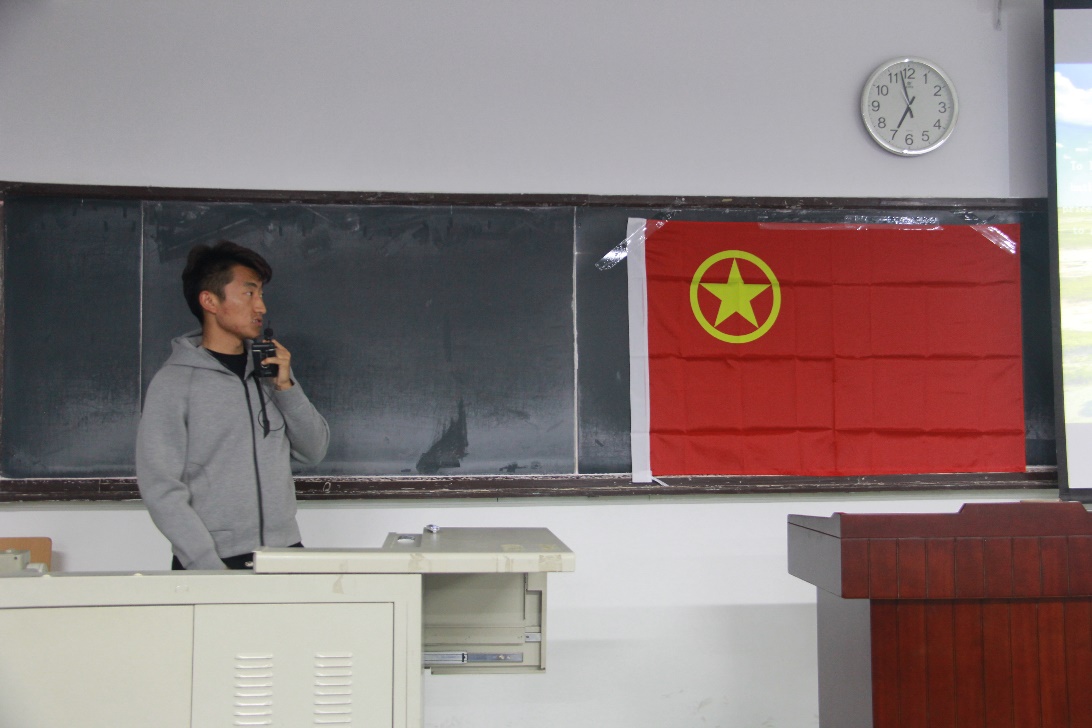 翟功涛围绕支教这一主题展开报告。他以“大学生志愿服务西部计划”为例,围绕一年支教生活的回忆、感悟和成果,热情地分享了忙碌而又充实的支教生活。报告中,翟功涛自豪地说令他最难忘的成果之一就是组建了科尔沁左翼中旗第一支国旗护卫队。